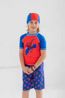 Marvel Avengers Captain America Pullover Rash Guard Swim Trunks And Cap 3 Piece Swimsuit Set Toddler