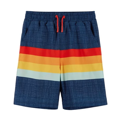 Your surfer kid will love their time in the ocean or by the pool with these Boys Blue Colorblock Lined Board Shorts. These board shorts feature a multi-color block over a solid navy short and a secondary lining for extra comfort. Whether you are planning your family vacation or just looking for a great pair of boys swim trunks, these board shorts for boys are the smart(and fun) choice!