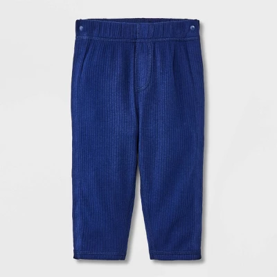 Dress baby in comfy style with these Adaptive Side Snap Pants from Cat & Jack™. These solid-color pants are designed with side snaps for easier dressing and access to the body or other objects and devices. Specially designed for sensory needs, this pair of ankle-length pants features flat seams and no tags to eliminate abrasion against the skin. Seams are intentionally chosen to withstand high level activity without irritating the skin. Garment care and size information is provided through heat seal labels, not itchy tags. Made with soft and stretchy fabric, this pair of relaxed-fit pants is perfect for pairing with tees and bodysuits for cute everyday outfits.