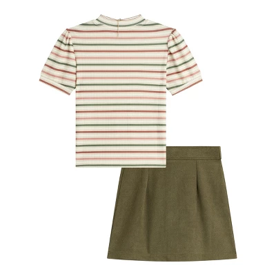 Beautees Girls’ 2PC Stripe Mock Neck Top With Belted Skirt And Necklace