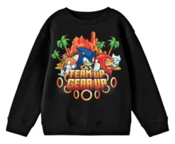 - CUSTOM DESIGNED: This fun youth sweatshirt features a big colorful image of Sonic, Tails, and Knuckles and the words “Team Up, Gear Up” that has been professionally printed on a black background for long-lasting quality.