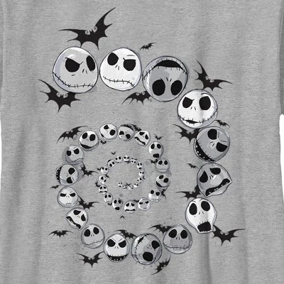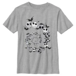 - Strut your stuff with this stylish new boys’ t-shirt that is perfect for every occasion! Featuring Jack Skellington’s face showing all his emotions in a cool spiral surrounded by bats printed across the front.