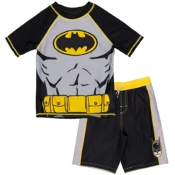 - Officially licensed DC Comics Justice League little boys cool and stylish short sleeve swim shirt top and cute and stylish swimming shorts bottoms