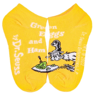• These socks highlight some of those stories like Cat In The Hat, Green Eggs and Ham, Horton Hears a Who, and Thing One and Thing Two.