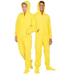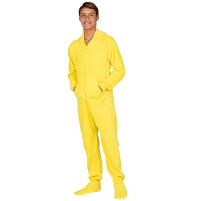 These bright and fun yellow pj’s are made for both boys and girls! Soft, plush fleece blankets the entire body in warm, luxurious fabric. These sunny footie pajamas for kids feature hoodies and pockets – making them as stylish and practical as they are cozy! Tweens, teens and kids alike love these trendy and ultra comfortable onesies! A favorite staple for all ages!