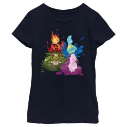 Discover what happens when opposites react! Join Ember, Wade, and all their friends in a city where the elements of fire, water, land, and air all live together in Disney’s all-new computer-animated feature film Elemental! This Girls’ Elemental Four Element Friends Poster Graphic T-Shirt features a colorful group portrait of earth element Fern Grouchwood, fire element Ember Lumen, water element Wade Ripple, and air element Gale Cumulus across the front.