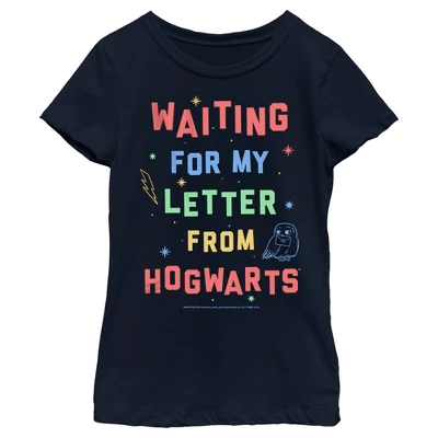 Unlock the magical secrets hiding in the closet under the stairs with this officially licensed Harry Potter Waiting for my Letter from Hogwarts Girls’ Tee! This cute design features an owl holding a letter in its beak next to the colorful phrase “Waiting On My Letter From Hogwarts.” Head to Hogwarts with your favorite witches and wizards in this new graphic tee and learn to defeat He Who Shall Not Be Named!