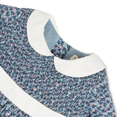 Our classic long sleeve smocked dress in soft organic cotton features an adorable peter pan collar to frame her face with simple charm. Features a woven collar, smocked bodice, ruffle edge cuffs, waist sash and bow at back, and button closure at the center back. Fully lined and ready for all of your picture perfect moments!