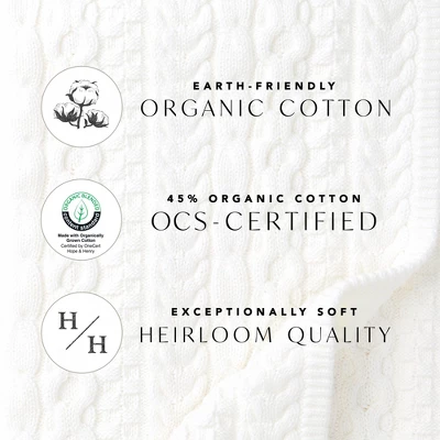 - Earth-friendly organic cotton. 45% organic cotton OCS-Certified. Exceptionally soft heirloom quality.