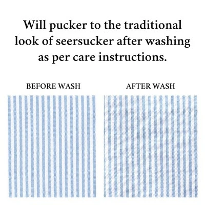 - Button front with faux horn buttons, welt front pockets and chest pocket, and adjustable back strap. Will pucker to the traditional look of seersucker after washing as per care instructions (see detail photo). Machine washable.