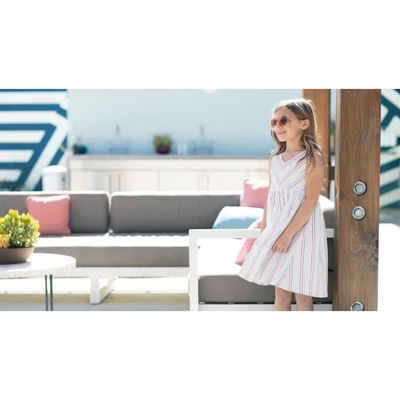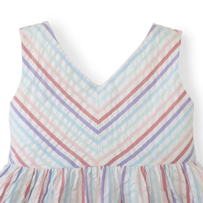 Stripes and checks are always a classic, but they feel fresh and fun in our summer swing dress in 100% cotton seersucker. Features a v-neck silhouette, a full lining, and a side zipper for easy dressing. Comfortable to play and move in, but still has a beautiful and flattering silhouette that could be dressed up for a special event. Sure to be a summer staple!