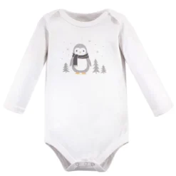 Hudson Baby long-sleeve bodysuits are an essential part of baby’s wardrobe. Our bodysuits feature adorable prints, embroideries, stripes and solids and provide a comfortable base layer that’s great for pairing with pants, shorts, or even wearing under outfits. Our bodysuits are comfortable and cozy for all-day, everyday wear for your little one. Hudson Baby Cotton Long-Sleeve Bodysuits 5pk, Gray Penguin is a great baby essentials set for your little one.