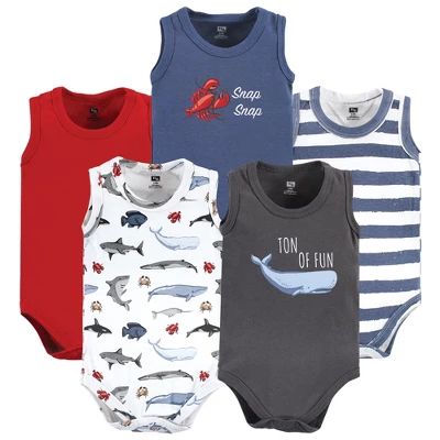 Hudson Baby sleeveless bodysuits are an essential part of baby’s wardrobe. Our bodysuits feature adorable prints, embroideries, stripes and solids and provide a comfortable base layer that’s great for pairing with pants, shorts, or even wearing under outfits. Our bodysuits are comfortable and cozy for all-day, everyday wear for your little one.