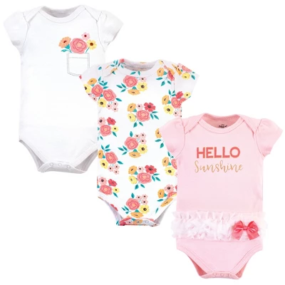 Little Treasure bodysuits are an essential part of baby’s wardrobe. Our bodysuits feature adorable prints, embroideries, stripes and solids and provide a comfortable base layer that’s great for pairing with pants, shorts, or even wearing under outfits. Our bodysuits are comfortable and cozy for all-day, everyday wear for your little one. Little Treasure Baby Girl Cotton Bodysuits 3pk, Flower Pocket is a great baby essentials set for your little one.