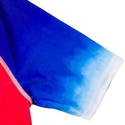 - Contrast raglan sleeves; Rib knit crew neck collar; Awesome sublimation print design; UPF 50+ material for UVB and UVA protection and worry-free sun time; 4 way stretch fabric for comfort and long-lasting fit; Pull on closure