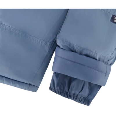 Get your little one ready for a snowday with this snowsuit by OshKosh B’Gosh. This 2 piece set includes a warm coat and overall snowbib for some fun in the snow. The coat has an fun camo print on the jacket, fur trim on attached hood, . A full length zipper for easy layering. The covered placket helps to keep your child warm. The coat has 2 pockets with snap closure to keep their favorite trinket. They can layer the coat on top of the snowbib or wear it on it’s own. The snowbib is solid and can be worn with any other coat. It has adjustable straps. Bib has elastic at the bottom of the leg to protect from snow.