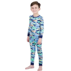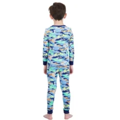 - PRINT: We at Sleep On It love creating toddler boyÂ’s pajama sets that showcase fun, trendy, and vibrant prints we know your little prince is going to love. ThatÂ’s why we created our ultra-trendy camo printed pajama sets for toddler boys. Featuring bright colors and dark blue lining along the hemlines, this set is a playful and contemporary take on a classic camo print, making it a must-have.