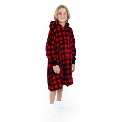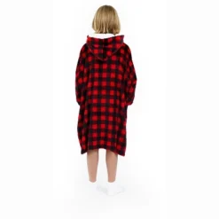 Staying warm just got cool with our super-cozy fleece blanket hoodie. In a bold and bright red plaid print, this wearable blanket has a super soft Faux Shearling inner liner, perfect for keeping her warm and toasty. The outer fabric is soft to the touch and features a handy kangaroo pocket for keeping her special things close all day. The long-line shape, elastic cuffs, and cozy hoodie keep in the warmth.