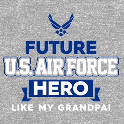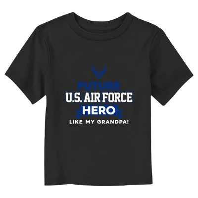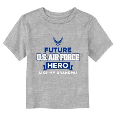 - The smallest family members are also the most stylish with this new toddlers’ t-shirt that is perfect for every occasion! Featuring the phrase: “Future U.S. Air Force Hero like my grandpa!” in blue and white lettering across the front.