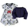 - Set includes organic dress and cardigan