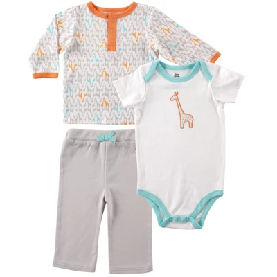 Yoga Sprout features fun, comfortable clothing with vibrant colors and playful patterns. This adorable layette set features soft, stretchable, 100 percent cotton fabric that is sure to keep up with your active little sprout. Available in sizes up to 24 months. Mix and match additional garments from our coordinating collections From happy baby pose to every day adventures, grow, relax and be happy, with Yoga Sprout. Yoga Sprout Baby Unisex Cotton Layette Set, Giraffe is a great baby essentials set for your little one.